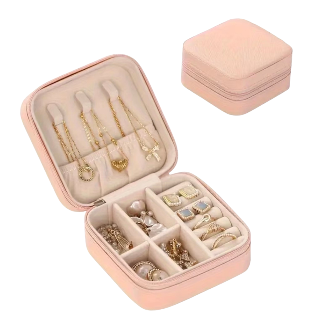Lleva tus accesorios favoritos contigo de forma segura y organizada con este hermoso mini joyero de viaje. Su diseño compacto y sofisticado lo convierte en el aliado perfecto para mantener tus joyas protegidas mientras te acompañan a cada destino.